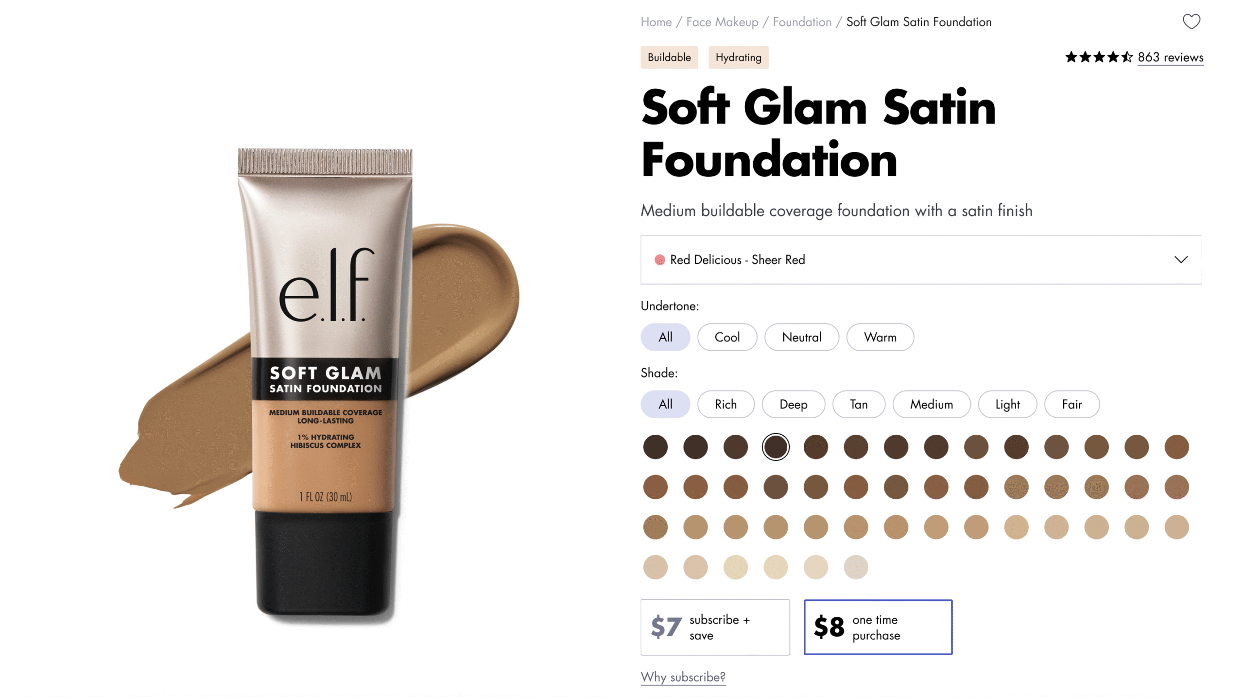 Shoppers can use the Shade and Undertone filters—individually or together—to narrow down options. With each selection, the dropdown list and swatch display dynamically update, showing only the shades that match the selected criteria. This interaction model keeps the experience focused, relevant, and responsive to user intent.